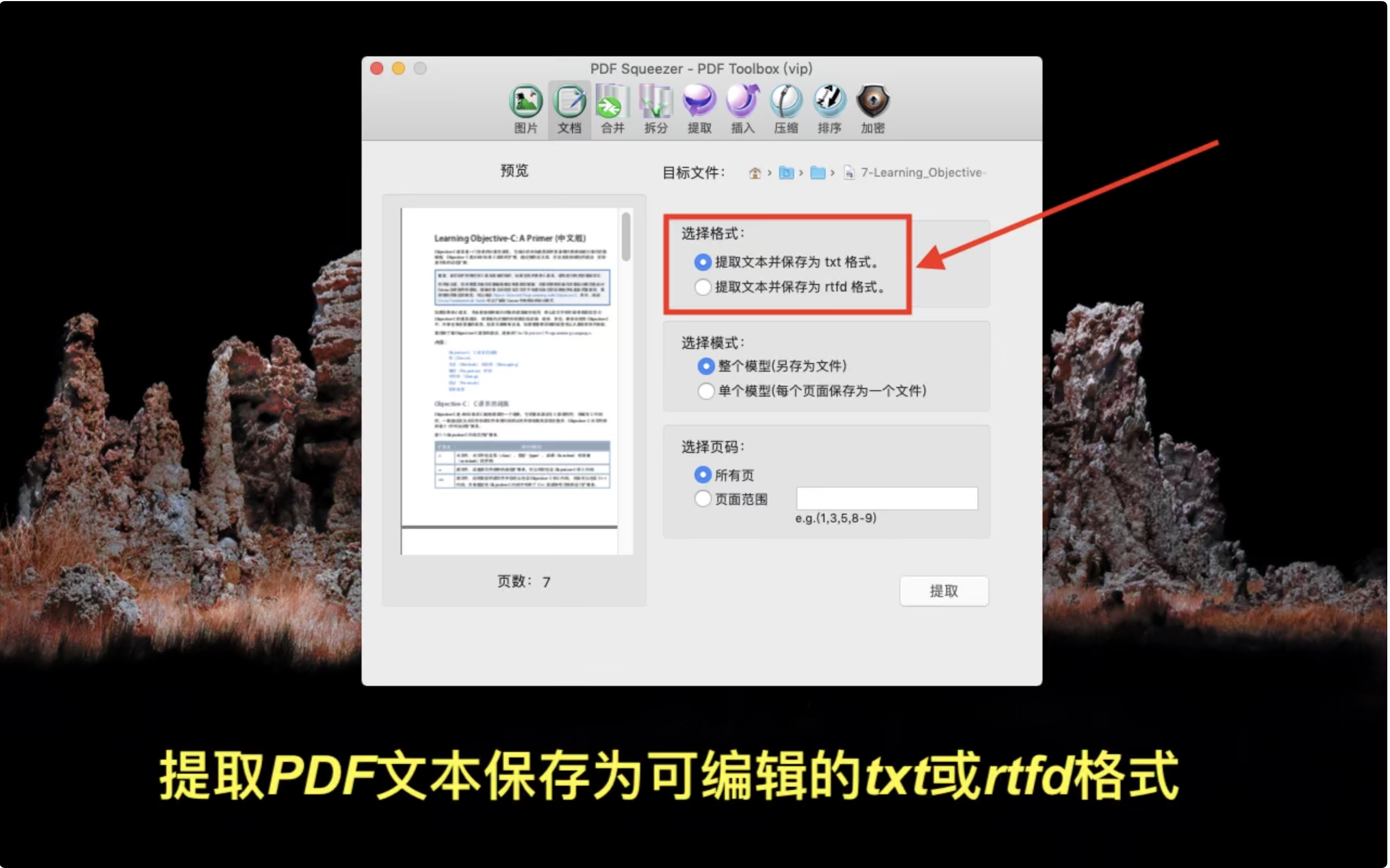可以提取PDF中的文本并保存为txt或rtfd格式;