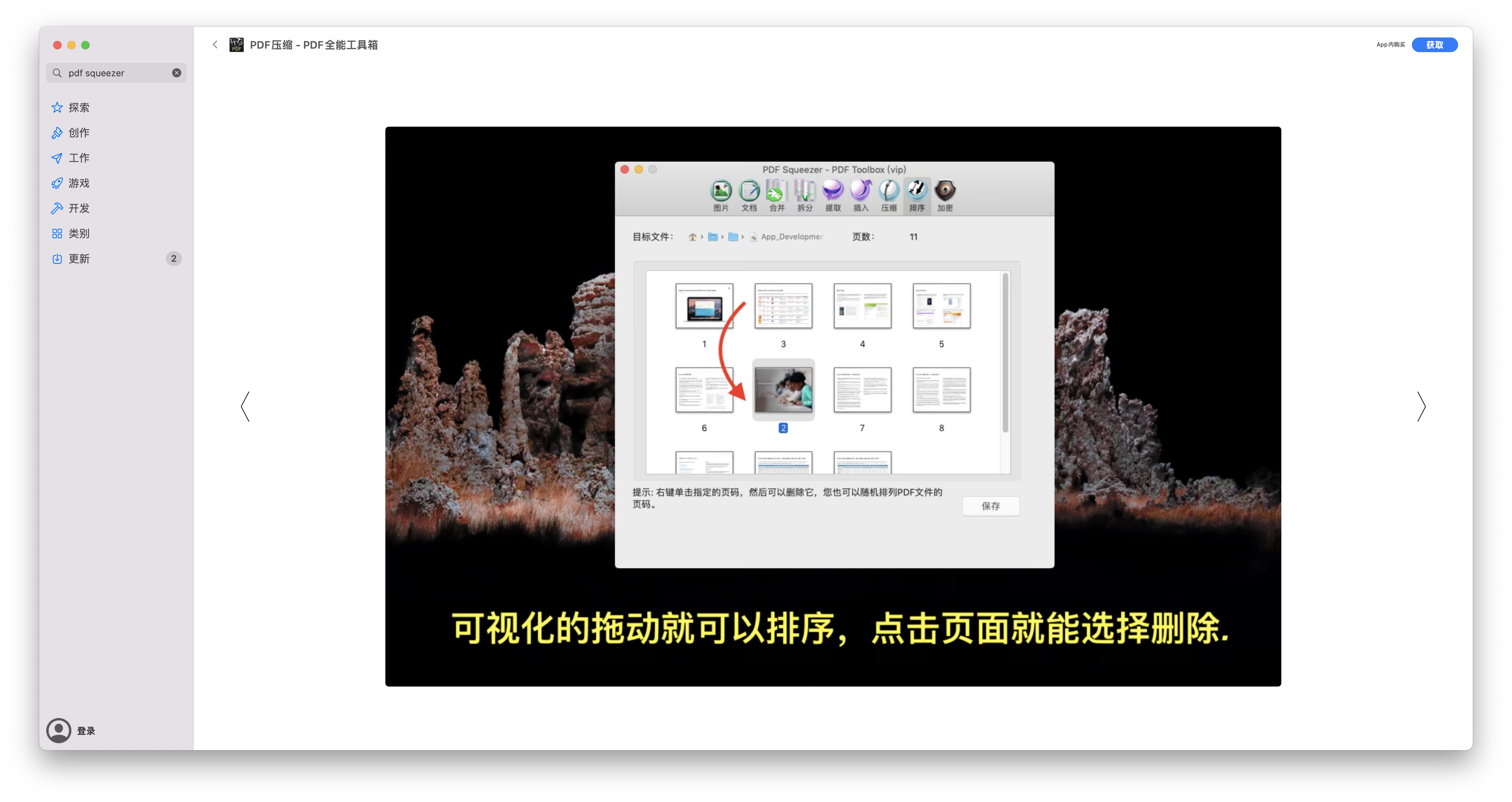 PDF Squeezer for mac是一款专为操作 PDF 文件而设计的应用程序,它几乎包含您可以想像的所有操作,例如:压缩、合并、拆分、提取、插入、提取图像、转换图像、提取文本、排序、加密等。如果您想轻松操作PDF文件,下载吧,它不会让您失望!