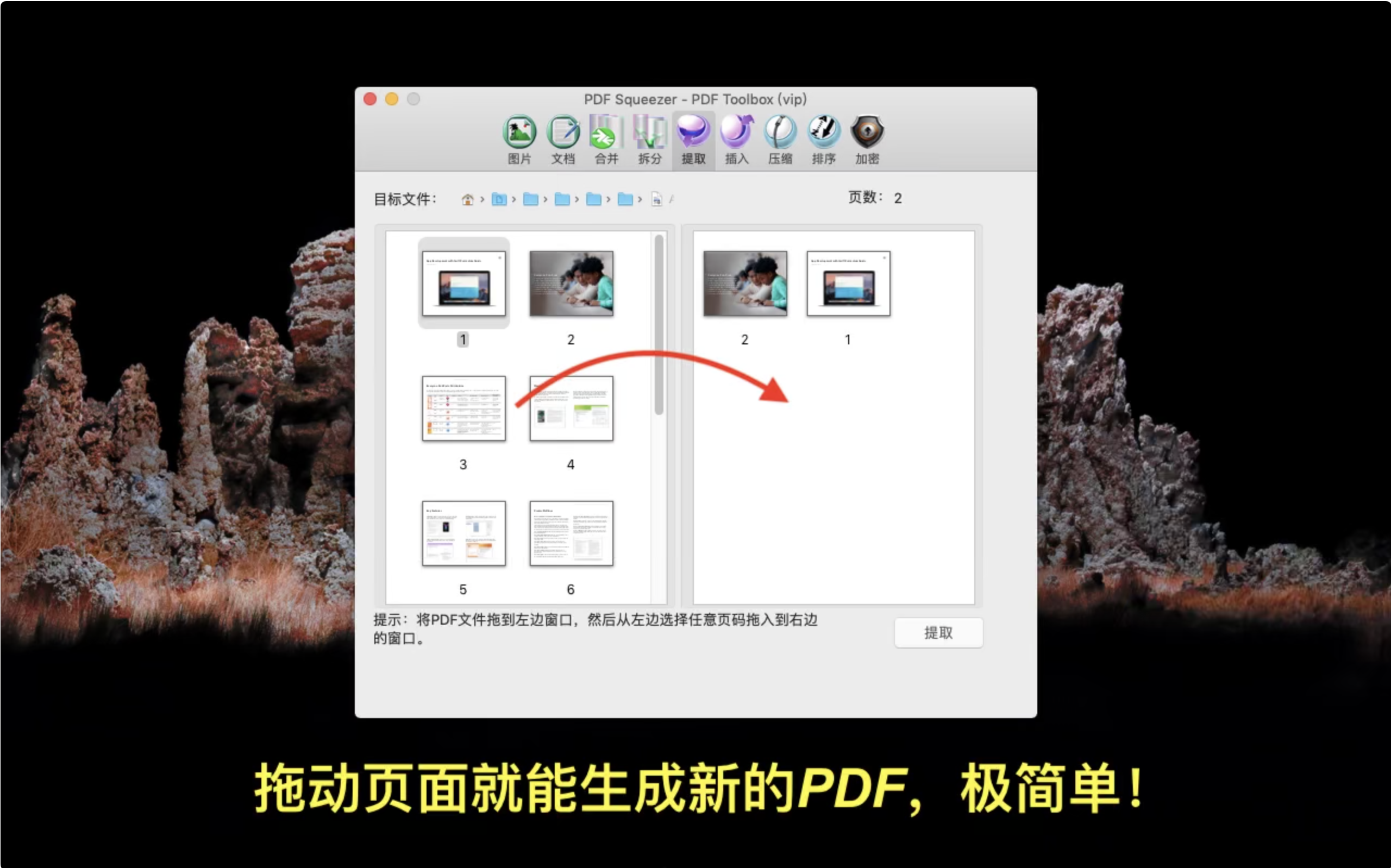 您可以从一个或多个PDF文件中任意提取页码合并成一个新的PDF文件;