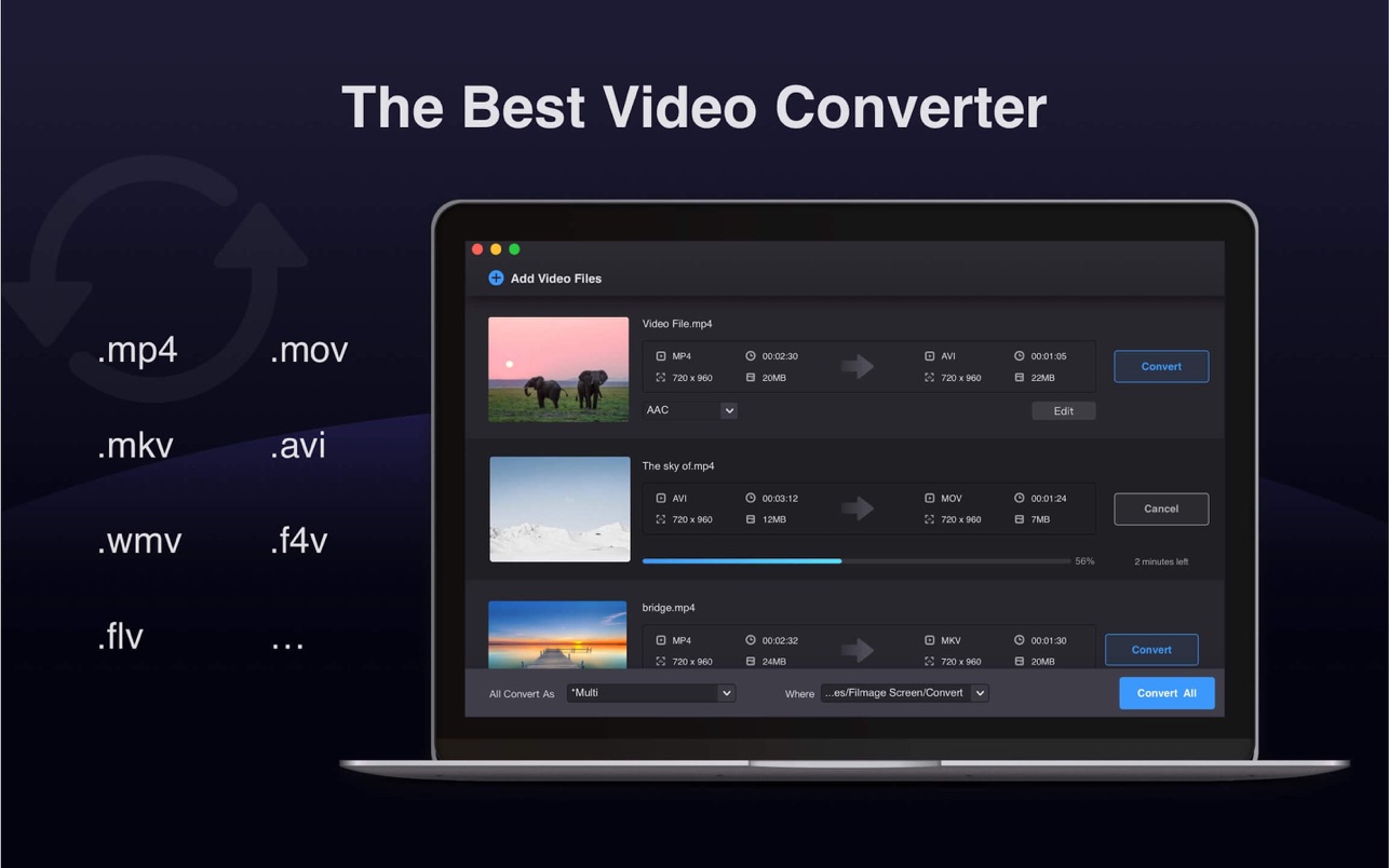 – 将任何视频转换为MP4,MOV,3GP,VOB,MKV,M4V,WMV,AVI,MPG,FLV,F4V,SWF,TS等多种其他格式