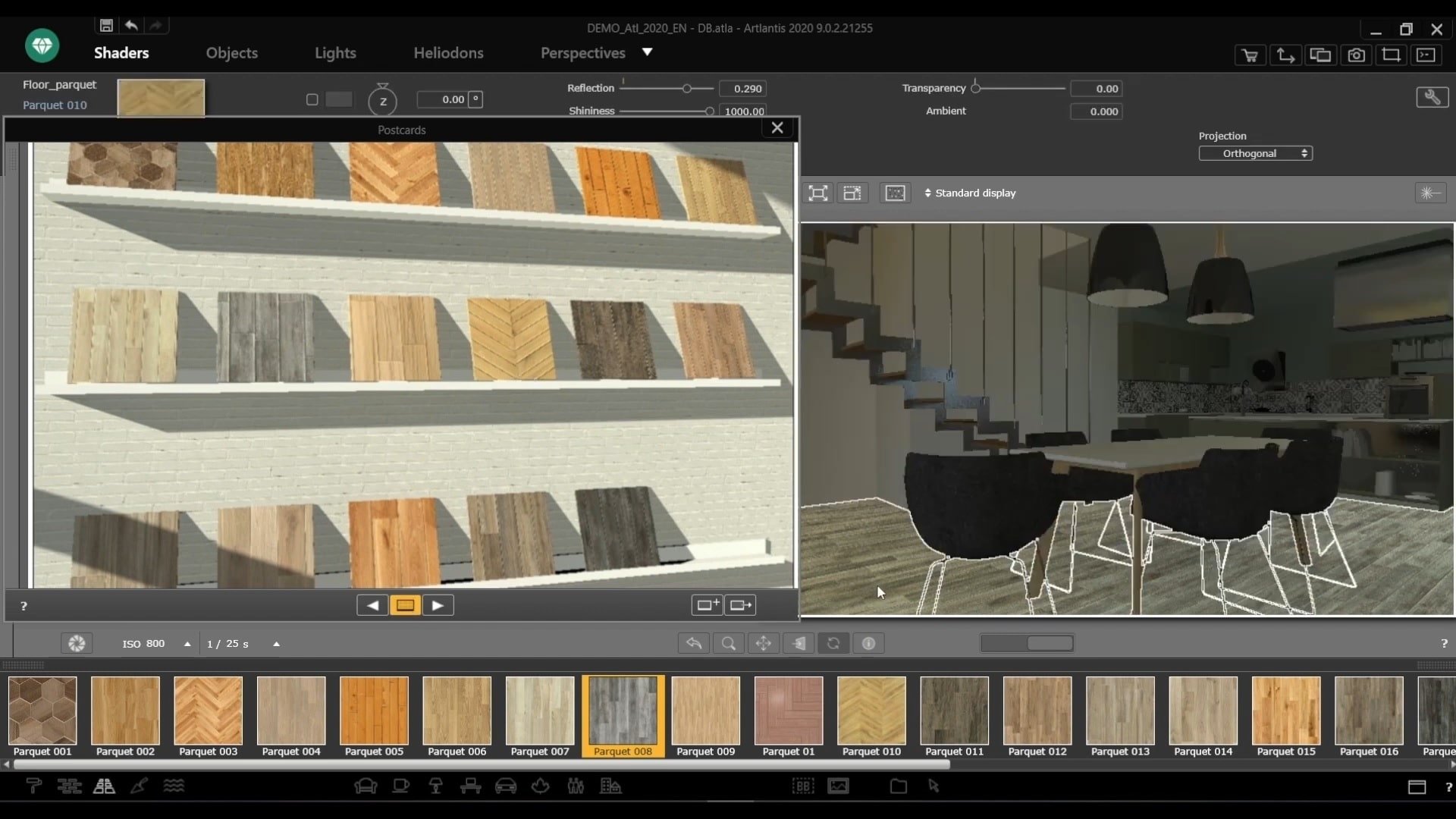 新版本的 Artlantis 具有用于自动创建纹理的新工具。从现在开始,着色器获得了新的属性:镜面反射、光泽、模糊效果、光栅叠加设置……所有这些都是为了提高纹理的质量。这个功能首先是为有经验的程序用户准备的——现在他们可以通过程序界面独立配置着色器库。