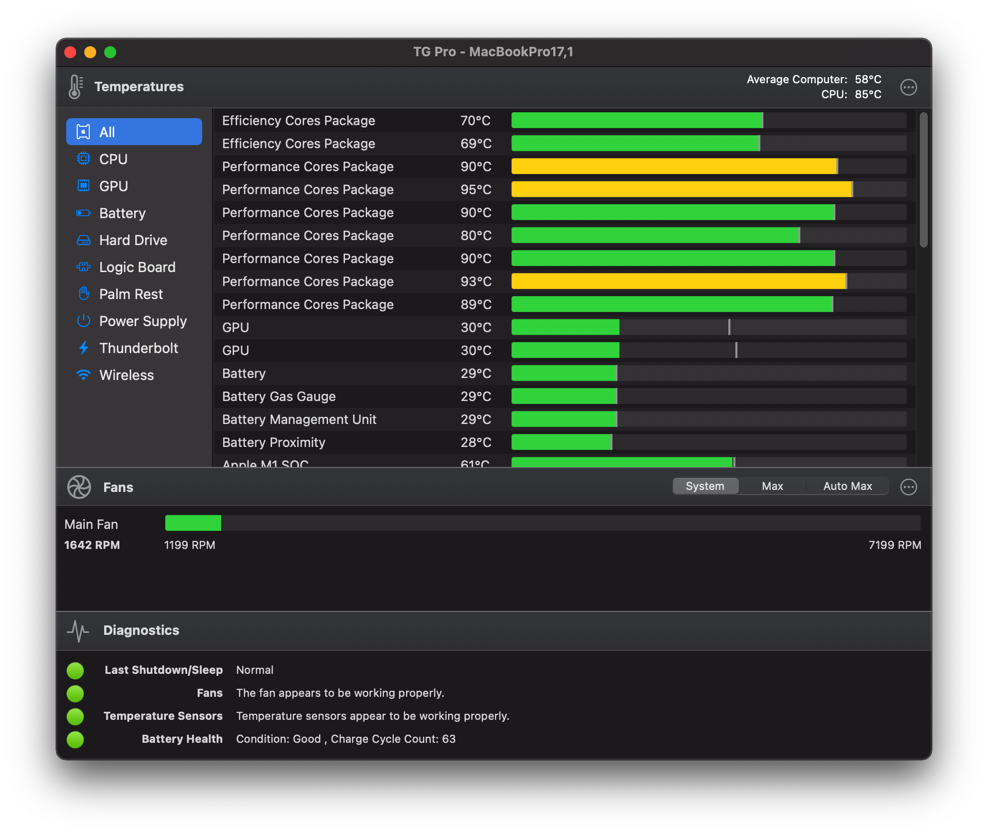 TG Pro中都可用。在一个窗口中,查看所有内部温度,风扇和硬件诊断信息。