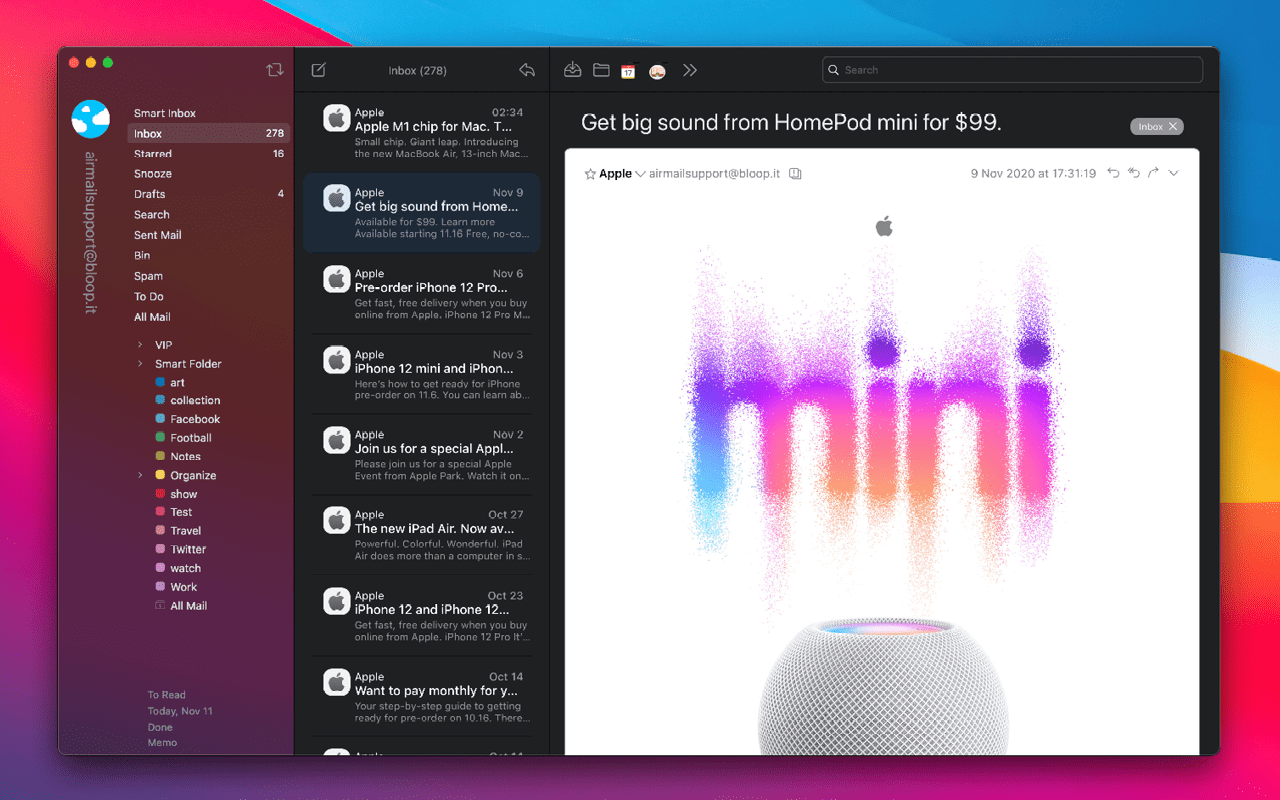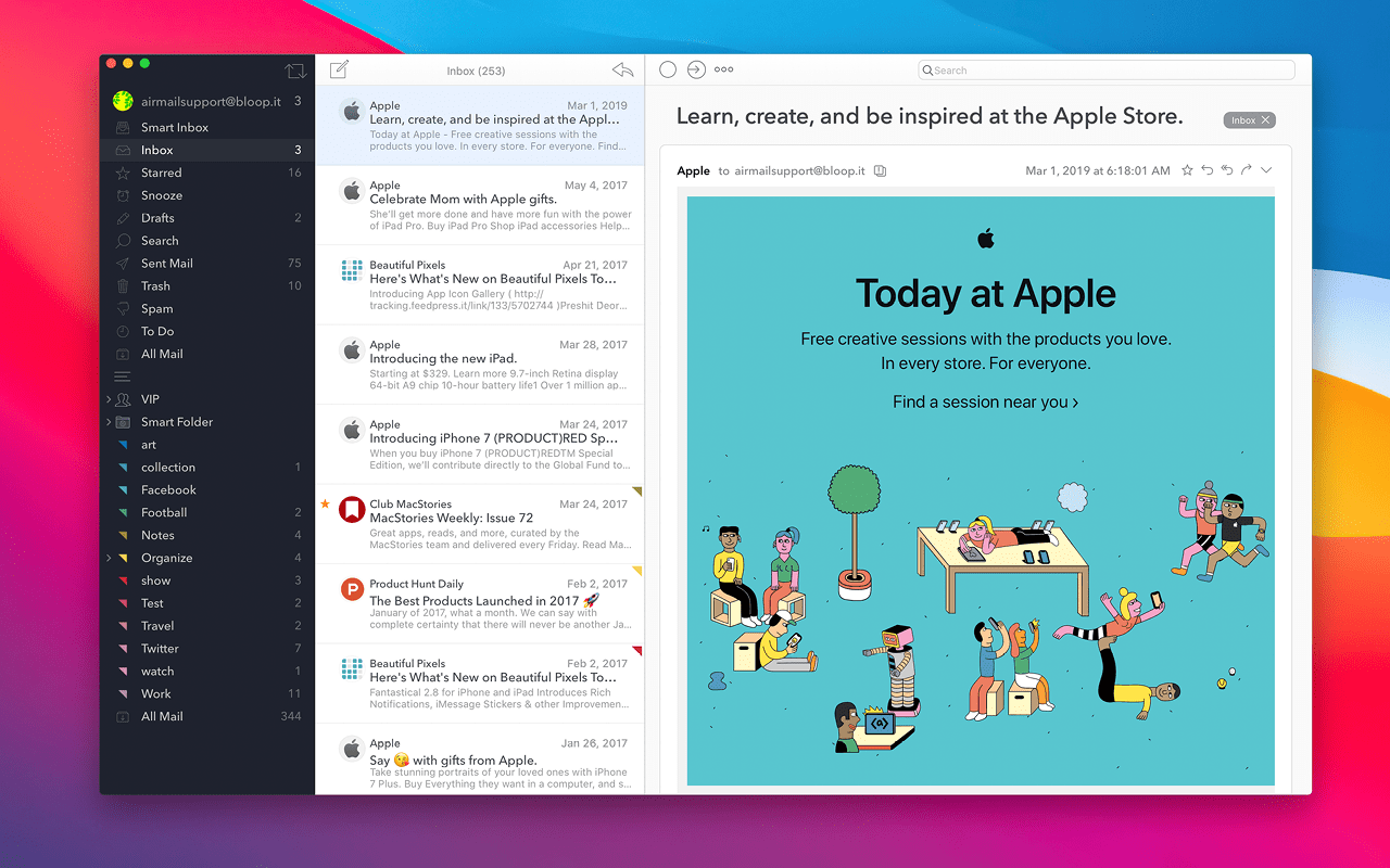 AirMail 的设计初衷就是让您可以一致地了解您是使用一个帐户还是多个帐户,并提供一个快速、现代且易于使用的界面。AirMail 很干净,可以让您不间断地接收邮件。这是您想要但找不到的电子邮件客户端……直到现在。