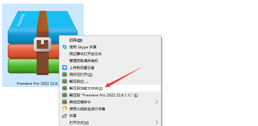 1、右键解压到当前文件夹(如果下载完成,不是压缩图标显示,显示白色或者浏览器图样,说明你电脑没有解压软件,自行安装解压软件)