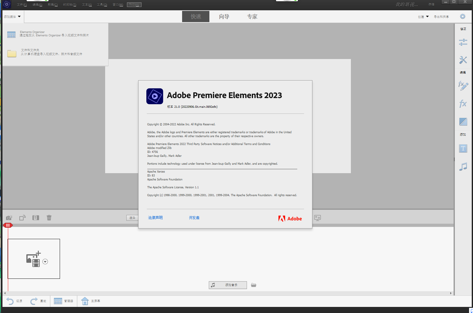 Adobe Premiere Elements 2023简称PRE即PR简化版,是一款专业的视频处理软件,能帮助用户剪辑出完美的影片,功能很多,而且不局限于视频这一块,对于图片的编辑也是很有帮助的。拥有专门的组织来存放视频和照片素材,如果您是第一次使用,这一素材库肯定是空的,而要一个个的加入肯定是很难的,耗时耗力,所以提供了自动扫描素材的功能,虽说视频和照片的格式较多,但是只要输入格式就可以,问题也不是很大。拥有了素材库后第一个好处就是方便,以后需要使用什么图片或者视频就能直接在素材库进行查找,而不是一个个文件夹去找,而且存在其中的素材还有整理功能,比如根据资粮、主题元素等进行整理,甚至还能添加标签,让它们作为一个系列,这更加的方便我们寻找素材。