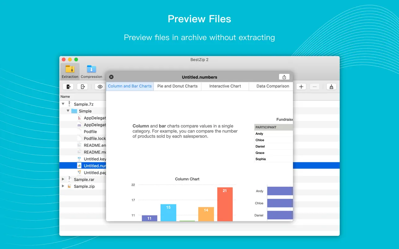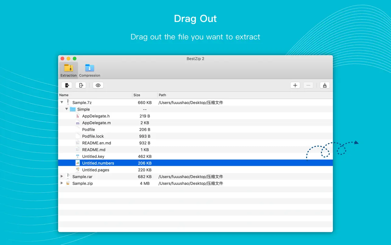 从压缩包中拖出想要解压的文件(夹),方便快捷。