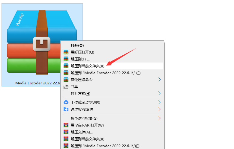 1、右键解压到当前文件夹(如果下载完成,不是压缩图标显示,显示白色或者浏览器图样,说明你电脑没有解压软件,自行安装解压软件)
