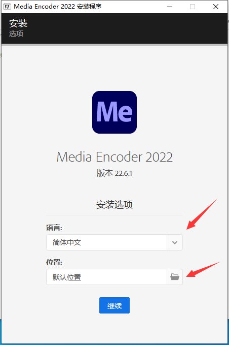 3、自定义安装位置,选择语言,点击继续(如下图)
