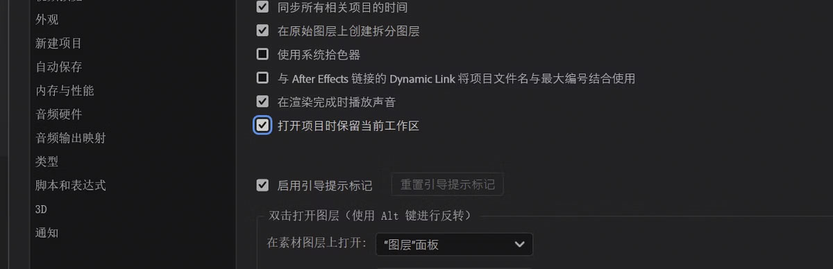 打开项目时保留工作区