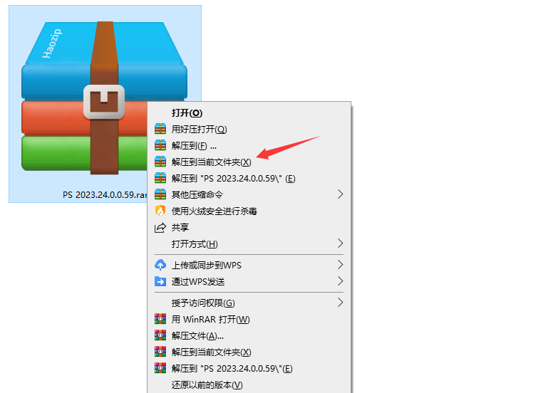 1、右键解压到当前文件夹(如果下载完成,不是压缩图标显示,显示白色或者浏览器图样,说明你电脑没有解压软件,自行安装解压软件)